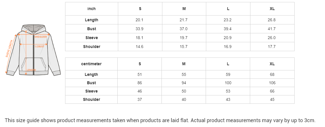 This size guide shows product measurements taken when products are laid flat. Actual product measurements may vary by up to 3cm.