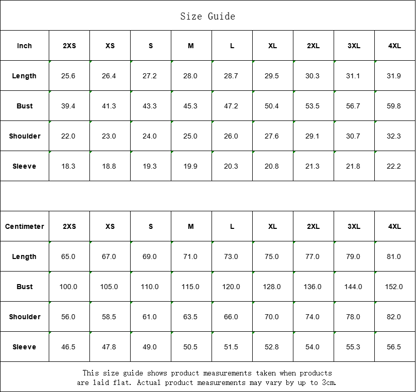 Inch | 2XS | XS | S | M | L | XL | 2XL | 3XL | 4XL |
