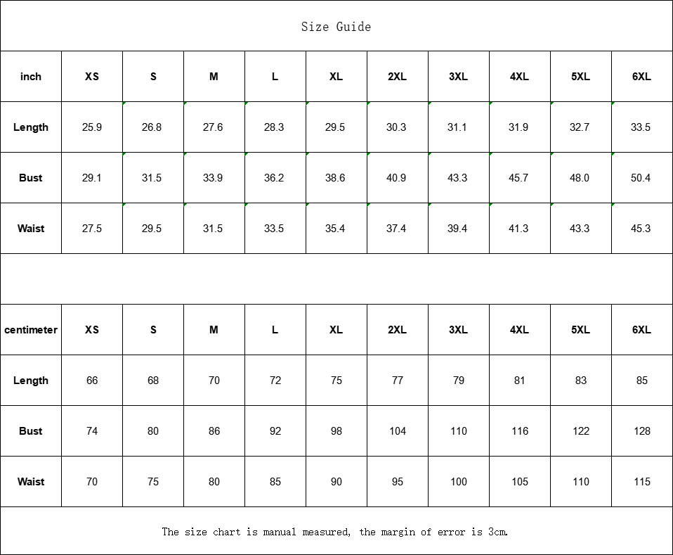 inch | XS | S | M | L | XL | 2XL | 3XL | 4XL | 5XL | 6XL |