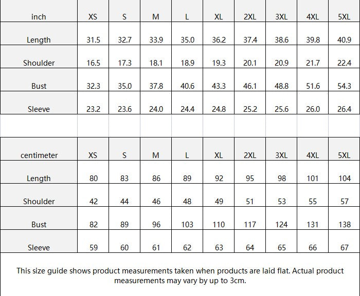 centimeter XS S M L XL 2XL 3XL 4XL 5XL