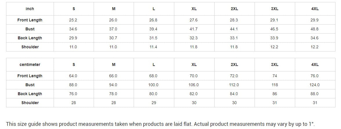 This size guide shows product measurements taken when products are laid flat. Actual product measurements may vary by up to 1".