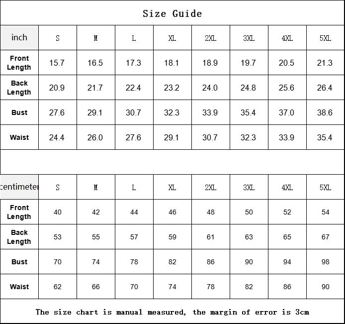 centimeter | S | M | L | XL | 2XL | 3XL | 4XL | 5XL |
