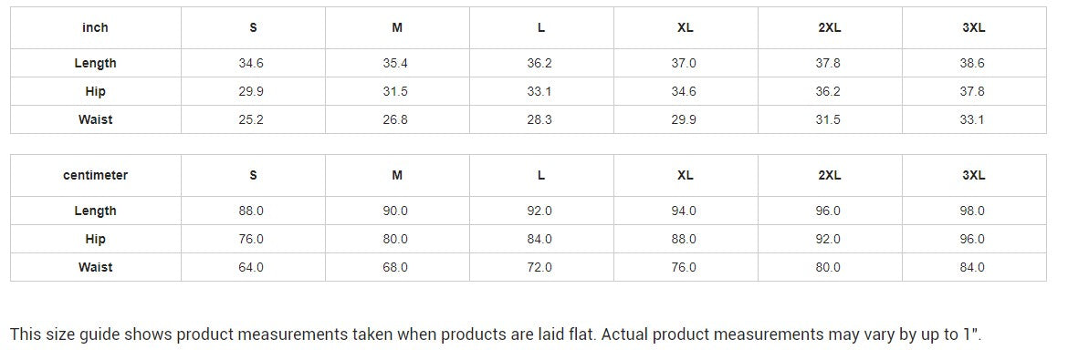 Waist | 25.2 | 26.8 | 28.3 | 29.9 | 31.5 | 33.1 |